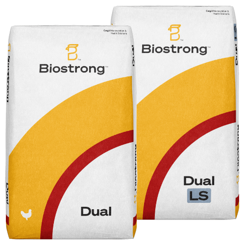 Biostrong™ Dual and Biostrong™ Dual LS (non-gmo) combines the power of two solutions – postbiotics and essential oil compounds (EOCs) – known for their beneficial effects on meat bird performance.
